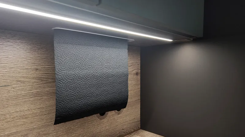 v horní skříňce zajišťuje pohodlný přístup k papíru přímo nad pracovní plochou a udržuje kuchyň čistou a organizovanou.