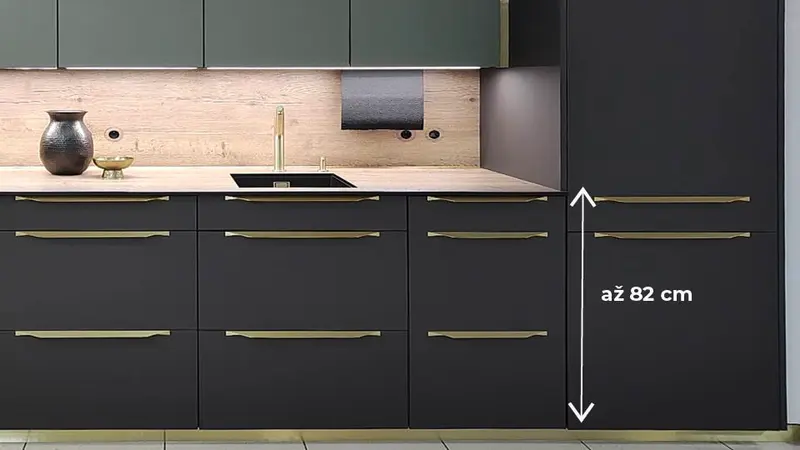 prostoru až 82 cm nabízí podstatně více místa, lepší organizaci a pohodlnější ukládání všech kuchyňských věcí.