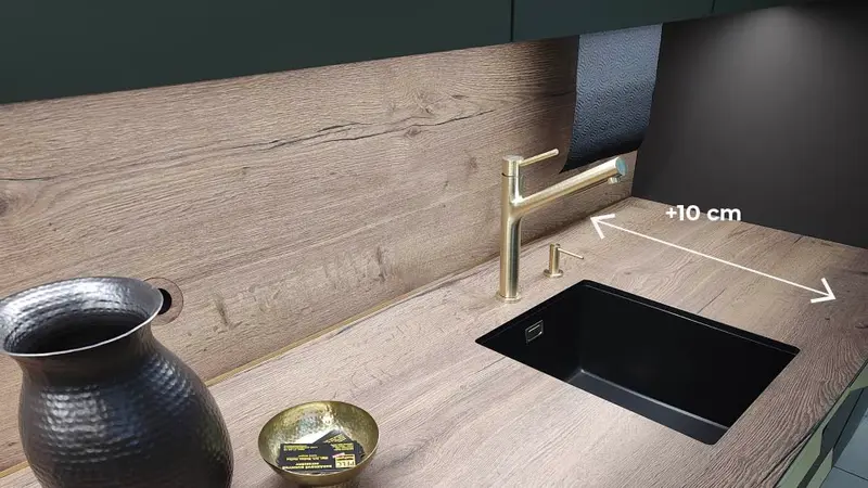 je nová hloubka pracovní desky, která zajistí dostatek prostoru pro volně stojící doplňky a ještě zbyde velkorysá pracovní plocha.